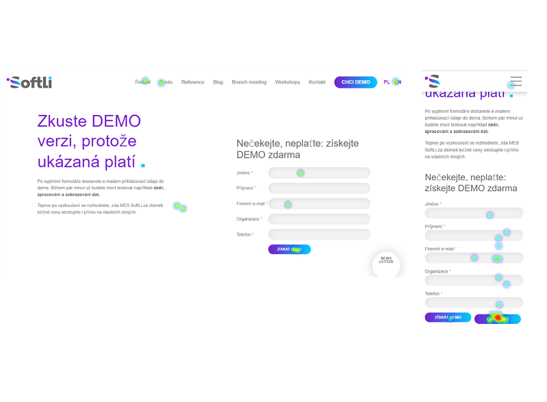 Pomocí detailní analýzy a testování jsme optimalizovali formuláře Softli tak, aby přinášely více odeslání a méně odchodů. Z heatmap a dat o chování uživatelů jsme vyčetli, kde ztrácí pozornost - a proměnili to v růst konverzí.